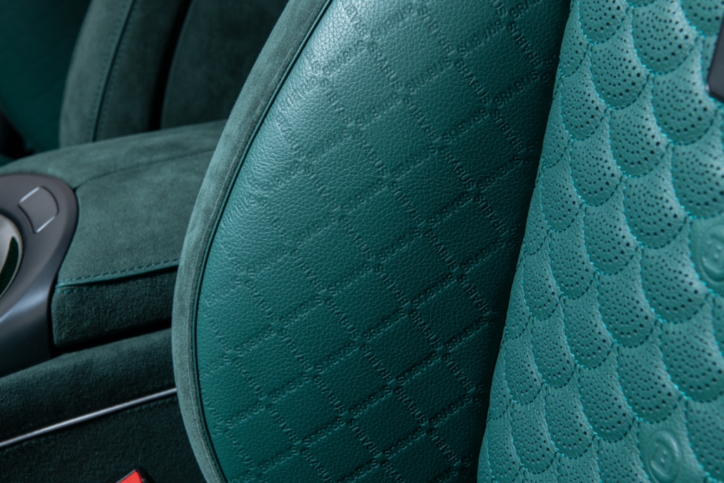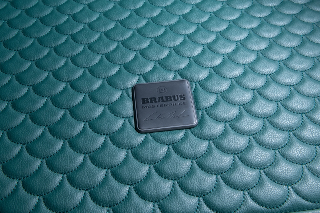 Interiér MASTERPIECE je navržen v odstínech opálové kůže a smaragdově zelené Alcantary. Některé části interiéru jsou precizně prošívané ve vzoru mušlí, zdobené logem „Double-B“ a perforované. Dalším příkladem rozmanitosti BRABUS úprav jsou zelené karbonové části v interiéru, které ladí s barvou vozu.